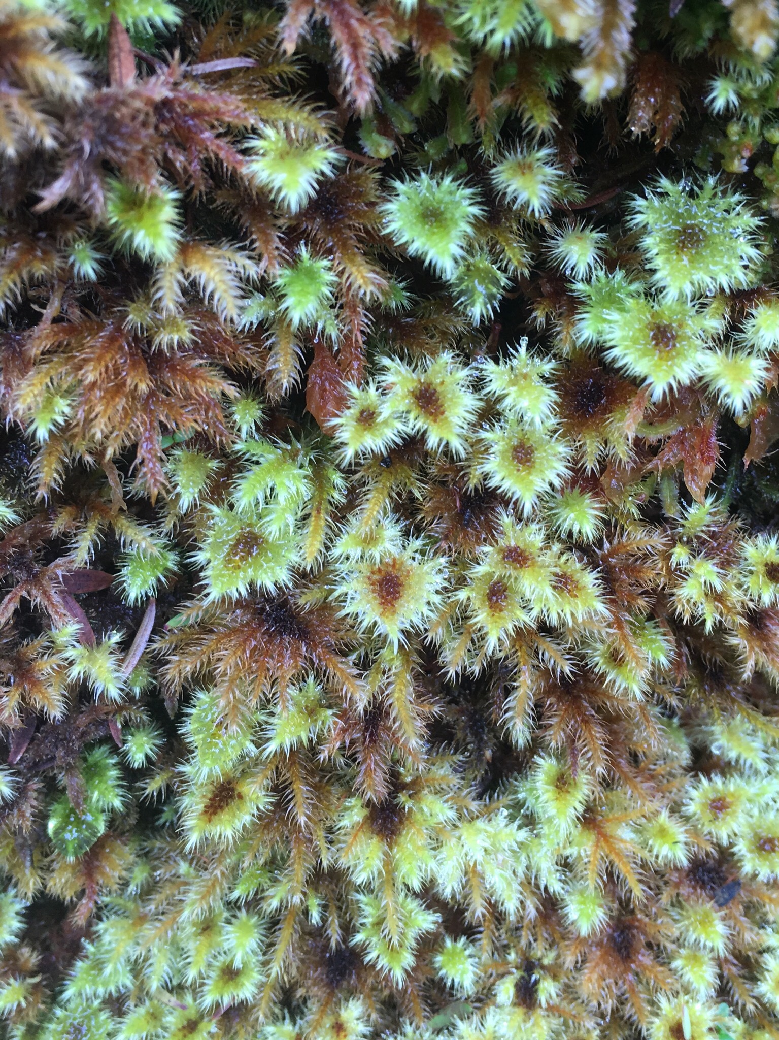 The day starts in a cloud, which is quite beautiful- it lends a mystical aura to the morning. We climb upwards into it, and once we are up on the ridge, follow the snaking back as it rises and dives through the swirling half-light. It’s as though we are on the back of a sea serpent. A sea serpent covered in furry kelp.