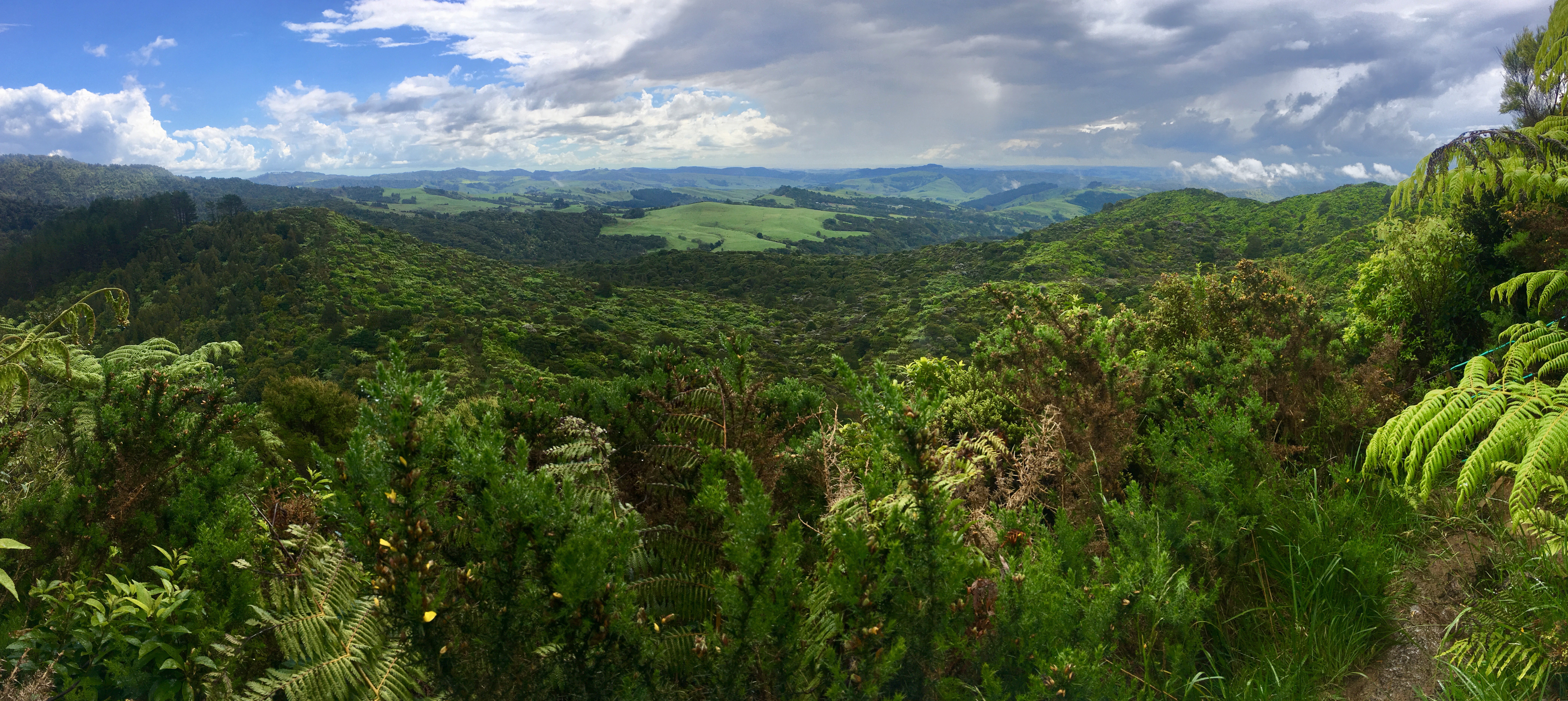 We walk past a school on the roads that connect the bay to the forest track. It must be lunch time. Prana walks by first, drawing several kids to the edge of the fence line. I go by next and one of them shouts, “there’s another one!!” One of them shrieks: “will you sign out visitor book?!” Another: “will you come inside and talk to our class?!” I have no idea if the teacher is permissible of any of these ideas. We step onto the driveway to at least sign the book, in which some other hikers have signed as well. “We are taking a poll to see where people are from. Do you know Bruce? He’s walking from Cape Reinga to Bluff. He’s walking the whole way with his father’s ashes. He’s coming to talk at our school soon.”