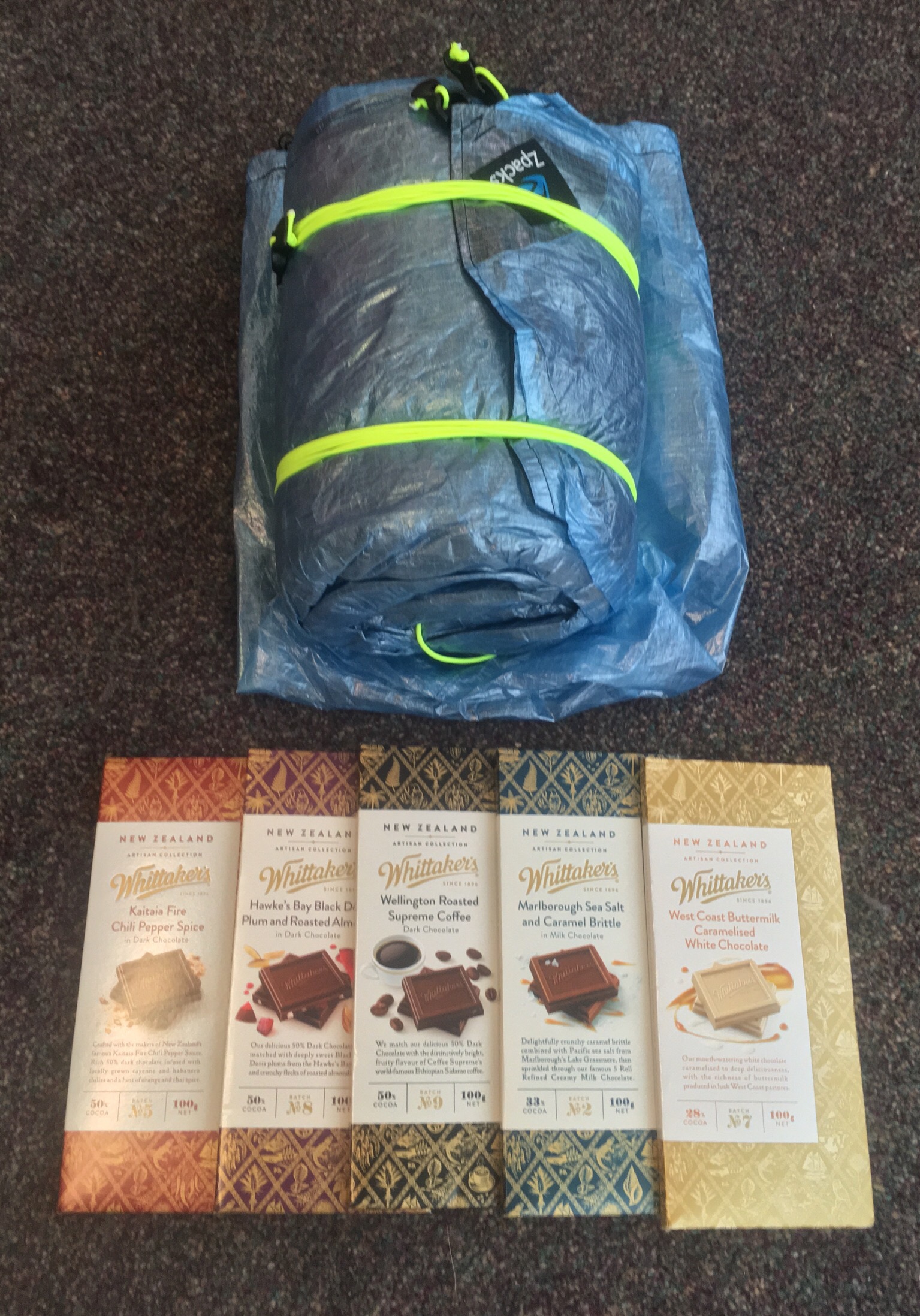 Aha! There is a lot of extra packaging. And the best part? It’s edible! Teresa had paneled the tent with 5 Whitaker’s chocolate bars! All specialty flavors, all flavors we had been wanting to try. Amazing!!!!!!