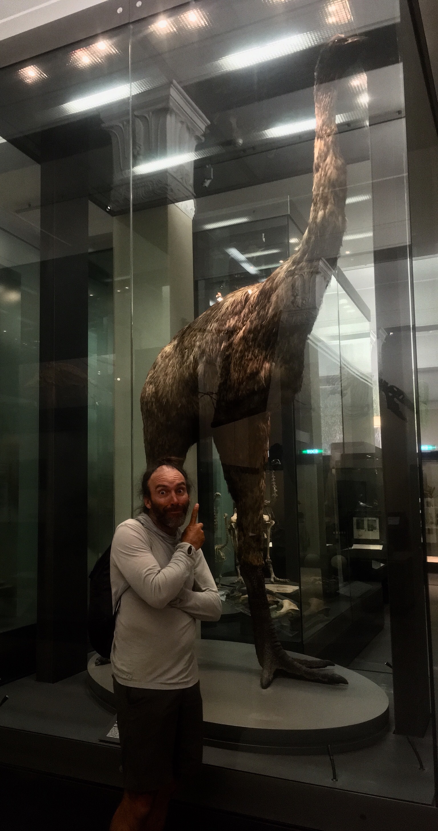 The second floor of the museum is a floor of natural history. I’m elated that we can finally identify some of the birds we’ve been seeing. There’s some plant and insect i-d-ing as well, including a cave Gil of wekas, NZ’s giant beetles, but the birds get most of the glory. The adjoining room starts getting into dinosaurs and extinct birds. Apparently there used to be a giant flightless tree-trunk-legged bird called the Moa.