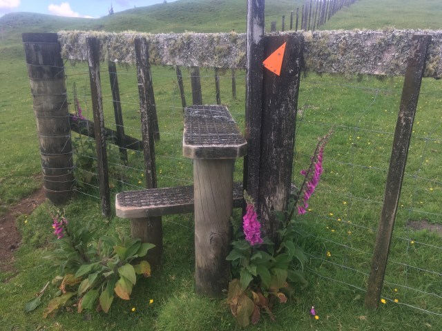 A few more rounds of tears and I start to feel better. The trail is along the outside of a fence line, and the crackling dry ferns are just high enough to cause an oven effect of no air movement and reflected heat. After more than an hour of this I use my Jedi thoughts and my text machine to alert Prana to the imminent need for lunch. The next turn drops me into shady forest, where he is waiting. I wonder which method worked! We are watched over by a heard of wild goats, but none can be coaxed to join us.