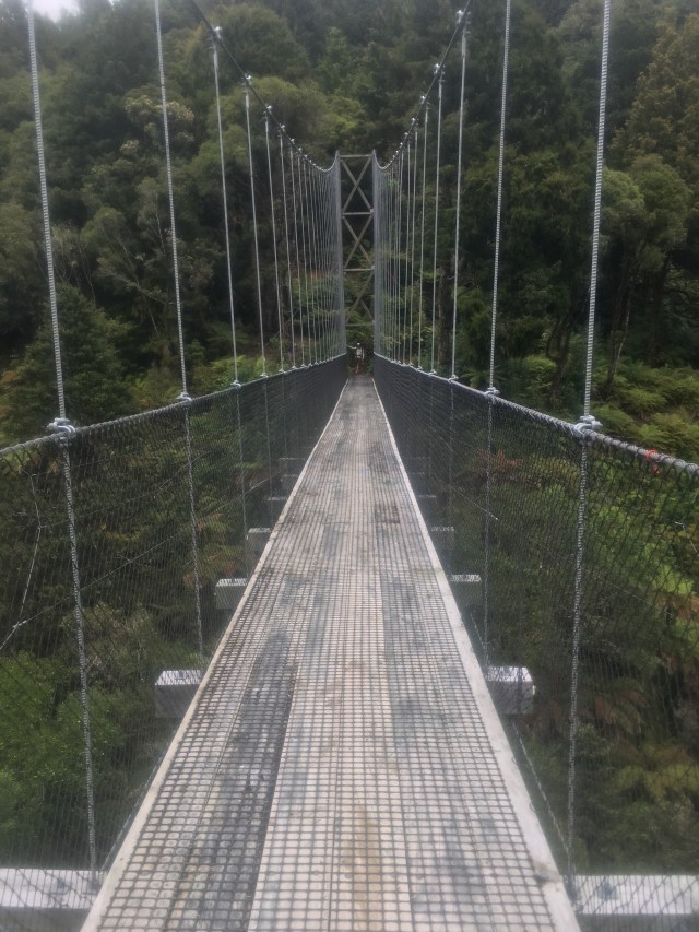 The longest suspension bridge in NZ is on the trail today, and the signs tell of the methodology in fascinating detail. The cables were pre stretched in the factory, calculated to the exact necessary length, then installed by helicopter. The bolts to take slack out of new stretch are massive.