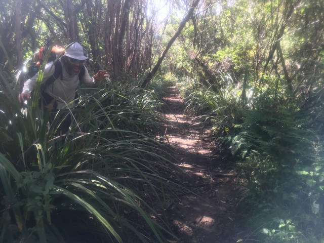 A late morning is nice; it finally feels like a bit of down time to make up for the not-rest day. We only need to cover 14 k to the carpark we will camp at for our early morning launch tomorrow onto the Tongiriro Crossing. Prana and I leave before everyone but Mike, and the standard, quietly charming tree tunnel continues out of camp. We can see clouds up high obscuring the Tongiriro peaks, and they appear to be moving at a fast clip, even though they never dissipate.