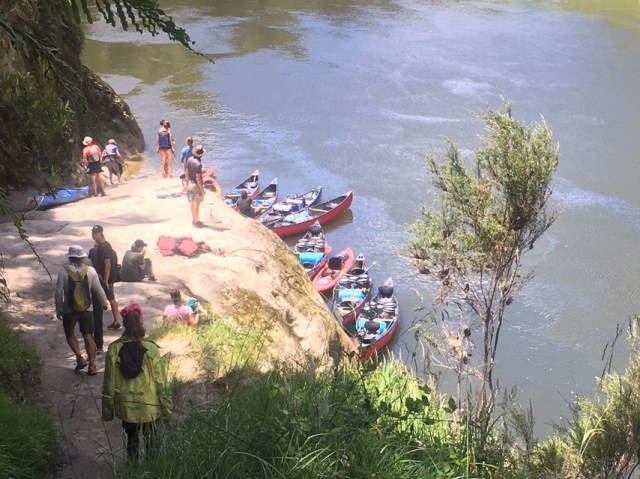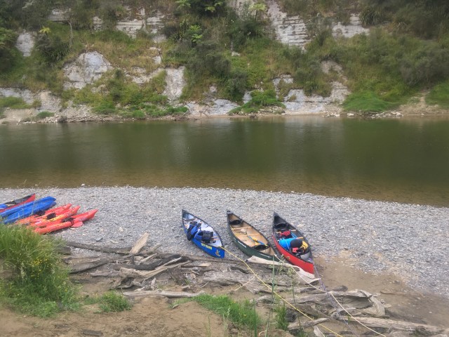 Satisfied in the way that comes only from knowing I would have been unsatisfied with passing it by, I head back to the boats. The group makes quick work of the return and has a team building game of reloading all the boats via the steep clay wall. It works wager-losingly well. Just across the river is a cobble beach with access to a DoC hut, which means rainwater tanks and a picnic table for lunch, so even though we made no downstream progress we pull in and unpack the picnic fixings. Prana and I have been rationing our water perfectly, and haven’t yet had to filter water on the river, my personally most-loathed chore.
