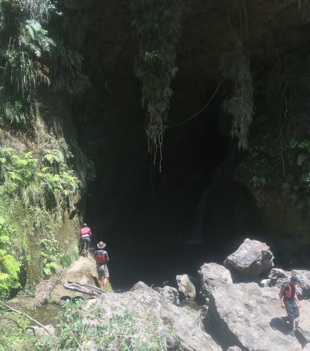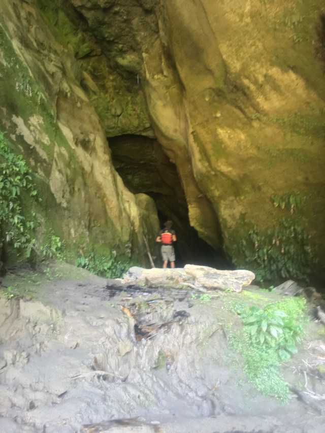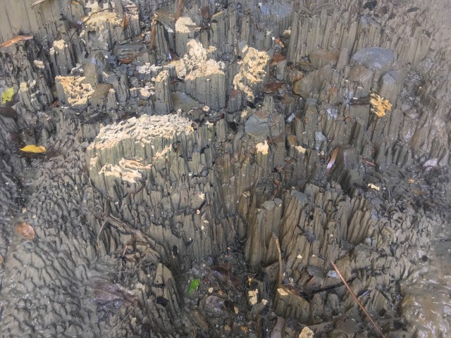Our next stop is a set of caves marked on the maps, neither that large. The first approach has some really bizarre stalagmite formations dripped into the clay from the springs above.