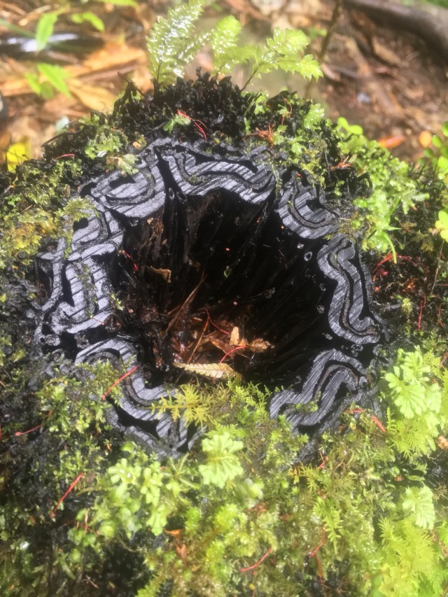 We decide to go the new route. I’m 90% sure the weekenders we met yesterday came the old route, which means it is perfectly passable, but that 10% could more than double the struggle of the day. I guess we will never know about the lower route, but the new route was no treat. There were trees down everywhere, grabby vines, annoying sidehill footing. At one point Bro steps on a pile of logs and debris and falls through up to his hip. “Um, I think I’m stuck,” he calls to Prana. Prana hauls him out. But any and all of this can be worth it if it is beautiful. It is just not. It is a small, unaesthetic, messy woods.