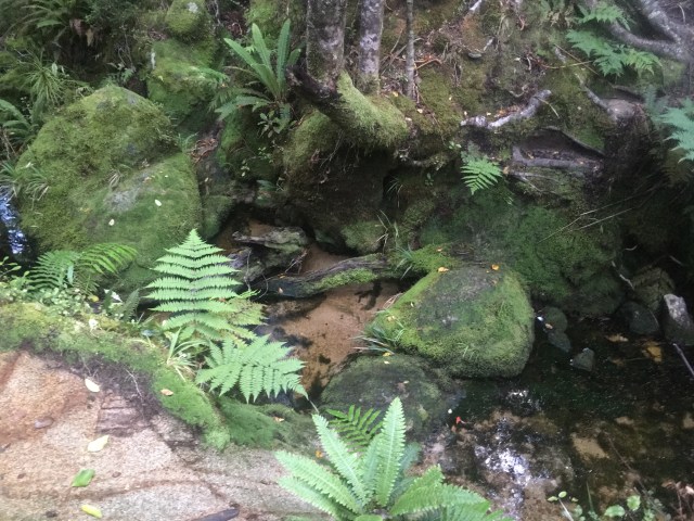 When we rejoin the coastal track, it seems packed with people. Most of them are day hiking in to a beach for the day, and we are walking against the flow. We have a lot of time before the bus arrives, so we collect some water on the way.