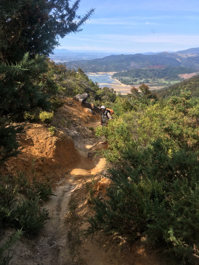 We are close enough to the coastal track that we see more and more people. A particularly enthusiastic Kiwi stops to chat- he loves the Inland Track, and trains on it for adventure races. The Marahau estuary comes into view below.