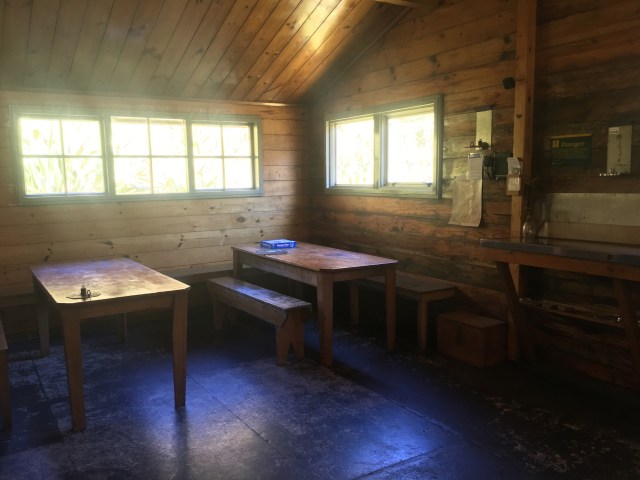 Goat Pass Hut is gorgeous. It’s in a spectacular location, with views into the pockets of the high peaks, and it was obviously made with talented craftsmanship. The porch is expansive and inviting. The bunks have a unique and space-efficient mixture of double and triple bunk stacks in two dorm rooms. There are nicely sized tables for playing games, a Connect-4 set, and ample windows for plenty of light.