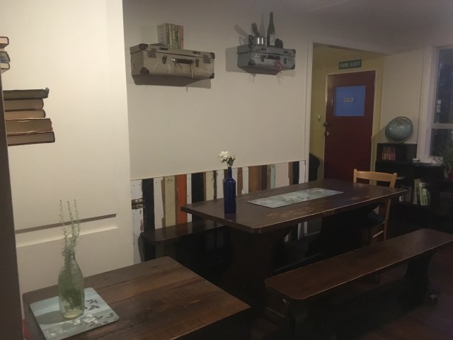 We trudge the last two blocks in the icy drizzle and locate the hostel building, although not which door to enter. Circling the premises, we find the little shed marked reception, and James welcomes us in.