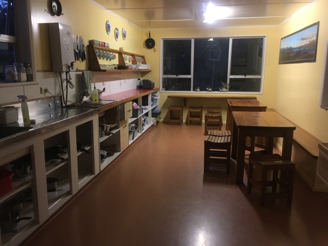 He gives us the tour, where our room is, where the sitting room room is with a stack of board games and a potbelly stove cranking out heat, the great kitchen with its succulent potted plants and and inviting benches. There is even a black flop-eared rabbit named Cocoa, a guinea pig named Star, and a cat whose name I never learn which are communal pets. Chickens roam the yard, their fresh eggs for sale, and a labeled, flourishing herb garden is planted outside one of the main entries. All the decorative and clever storage details look as if they were inspired from Pinterest, most items repurposed, perhaps from thrift stores, in a very tasteful, undilapidated way. Our room is an emergency let-out for TA hikers in bad weather, an old office room that was converted to stretch space in a town that is often booked full. I expected to nest among filing cabinets and stacks of papers, but it is a neat, simple, bedroom with two beds, two tables, a heater, and rubber water bottles. James explains that part of the reason he invited us early is that the internet data allotment resets each day at 2:00, and he has learned that many hikers need to download their next set of maps at Lake Tekapo; now we can download the maps and still have data later in the day to call and email home. Tailormade Backpackers is absolutely delightful.