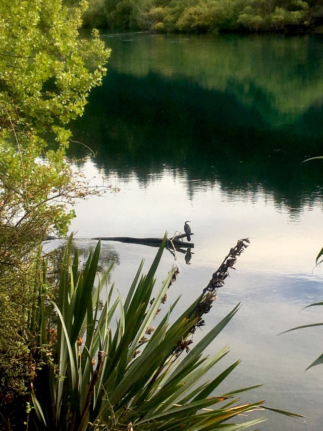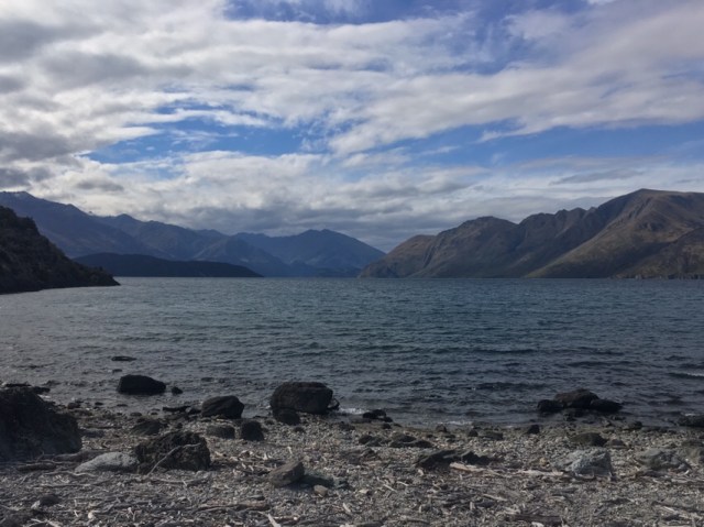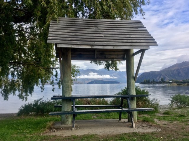 It was a surprisingly warm night, and I wake up at early light, hungry. We pack up quickly to make sure we don’t offend anyone with our choice of tentsite, and head across the river into Albert Town. The campground that we walk through seems absolutely filthy; it appears that people are living here, and trash swirls about on the ground. It was the better choice to camp just before. We wind through the sprawl to reach the highway, and there is another campground on the other side, in slightly better condition. I use the long drop and we follow the Clutha River to Lake Wanaka.