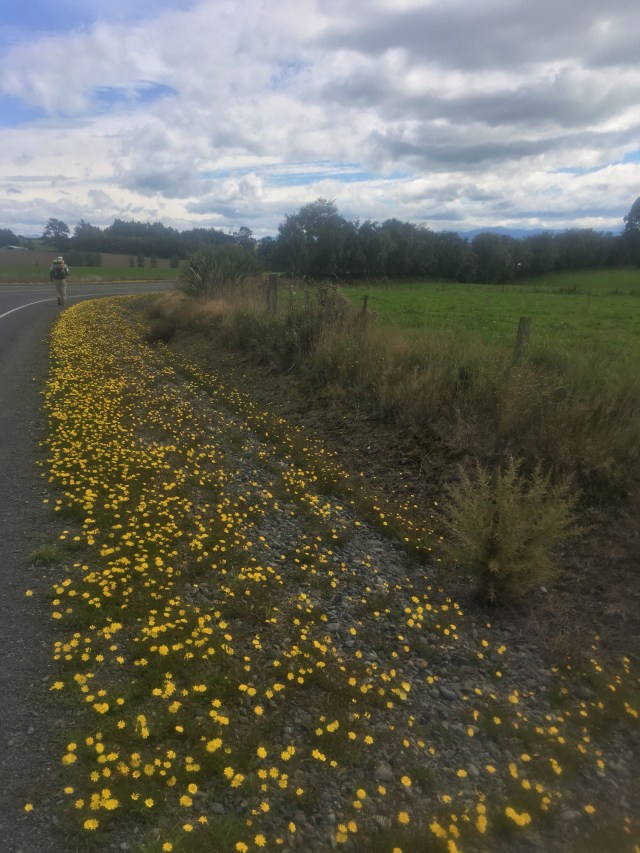 The asphalt is busy, noisy, hot, smelly. We march along the shoulder. I fill the focus of my vision with the thick carpet of dandelions painting stripes of parallel yellow. I fill my ears with an Outside podcast of a man attempting to run down an antelope on foot, old-school-hunter-style. His voice is gentle and introspective, his tone melancholy and wistful, his cadence soothing and hypnotic.