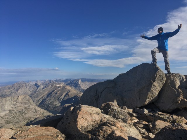 From the saddle we climbed tumbled talus, hopping one boulder at a time. I could no longer see the actual peak, so I just surmounted each ridge as it came…first hump…second hump…third hump…and the third proved the legitimate top! A broad, windy lump of a top, distinguishable only by the fact nothing else was higher. The wind clawed at us as we took pictures; the views were grand, expansive, but I had no concept what any of it meant, or would mean to us, yet. The peaks were simply beautiful faces, strangers in a crowd.