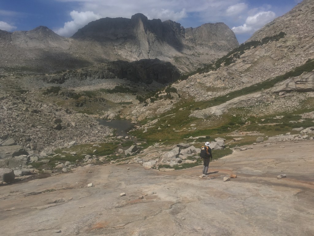 Into the Cirque we switchbacked, on pebbles of quartzite; and when it came time to choose camp, Prana had the energy to waffle. I, however, did not. We searched off to the left, found spots either mostly flat, or mostly out of the wind. Finally I just sprawled dramatically in the spot that was the least undesirable.