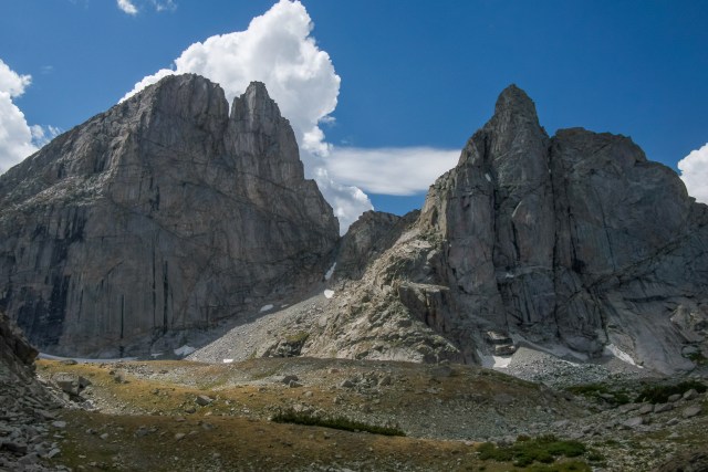 As we crested Jackass Pass, the wind became a tempest. The late, clouded hour backlit The Cirque of the Towers, forming a crucible of shadows. Even the outline, though, was incredible to behold: a truly quest-worthy destination.