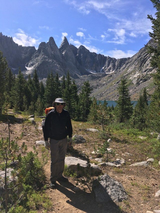 The tundra did indeed give way to three distinct scallops, and the descent was the easiest of all the difficult things so far. We filtered water from the lake at the bottom, giddy with success and scenery, amazed to find the backside of the Cirque of the Towers just as arresting as its front.