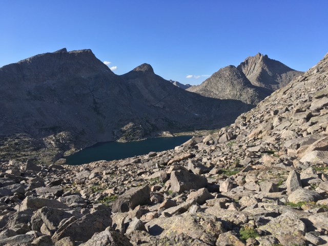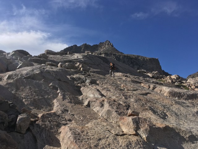I choked down snacks as we descended to Lonesome Lake. The Cirque, or rather the hollow it encircled, was so much bigger than I’d imagined. There was space to explore within it for days. We filtered and drank and filtered more water, making a pact to drink regularly today, even if stopping to filter frequently slowed down our mileage.