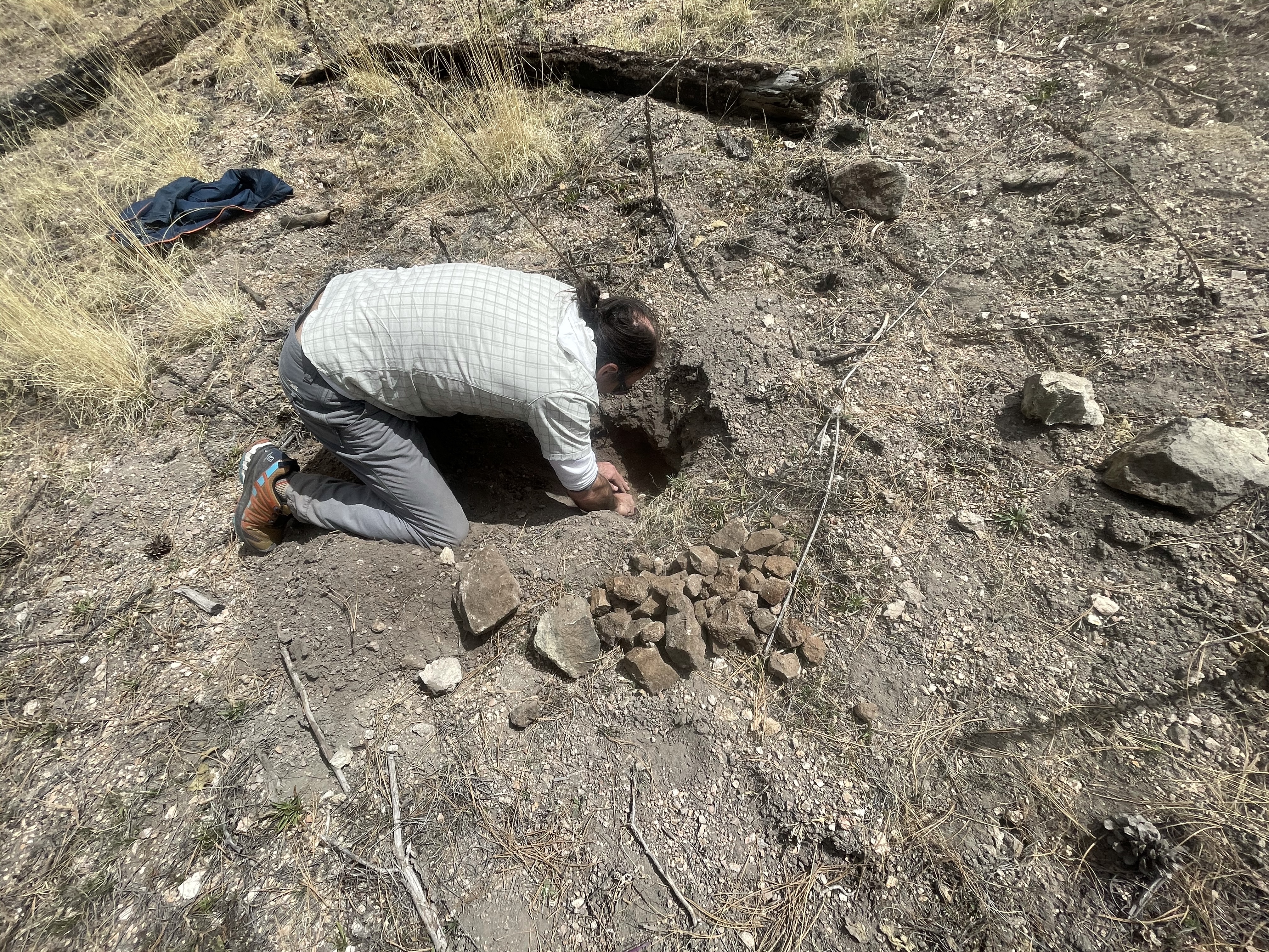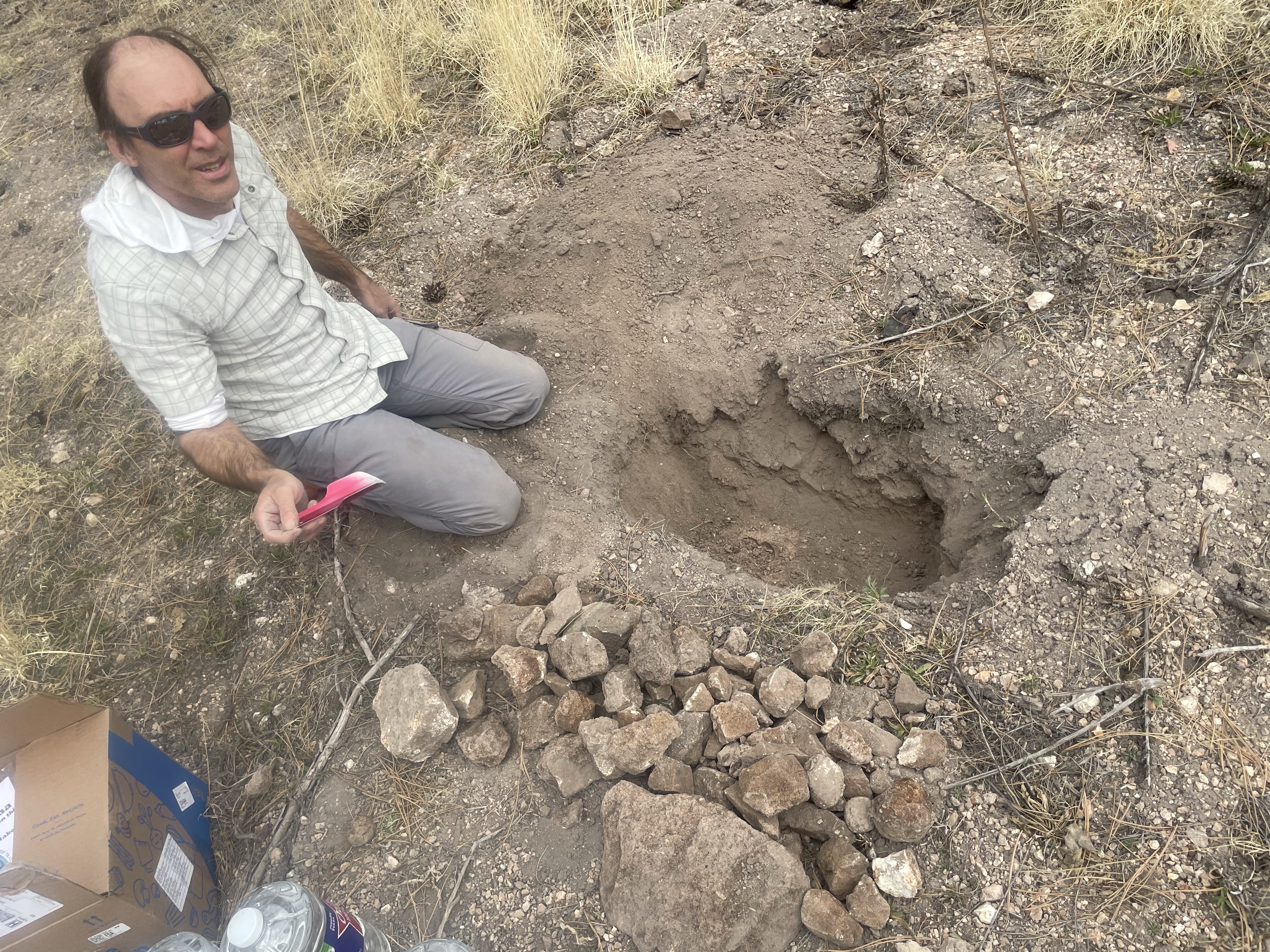 After delivering Noodle to the tiny, one store outpost of Winston, Prana and I wound up highway 59, through beautiful ponderosa forest. This area was going to be excellent hiking. At the CDT trailhead, same drill: hike in and dig. To be fair, Prana did all the digging since I was unable to kneel after sitting in the car all morning, so I ferried water gallons and our 6 days of food up to the squirrel hole. The end result was pretty darn well camouflaged, and both caches had been double-wrapped in odor proof bags against animals. I crossed my fingers that everything would be there when we were back in 3 weeks.