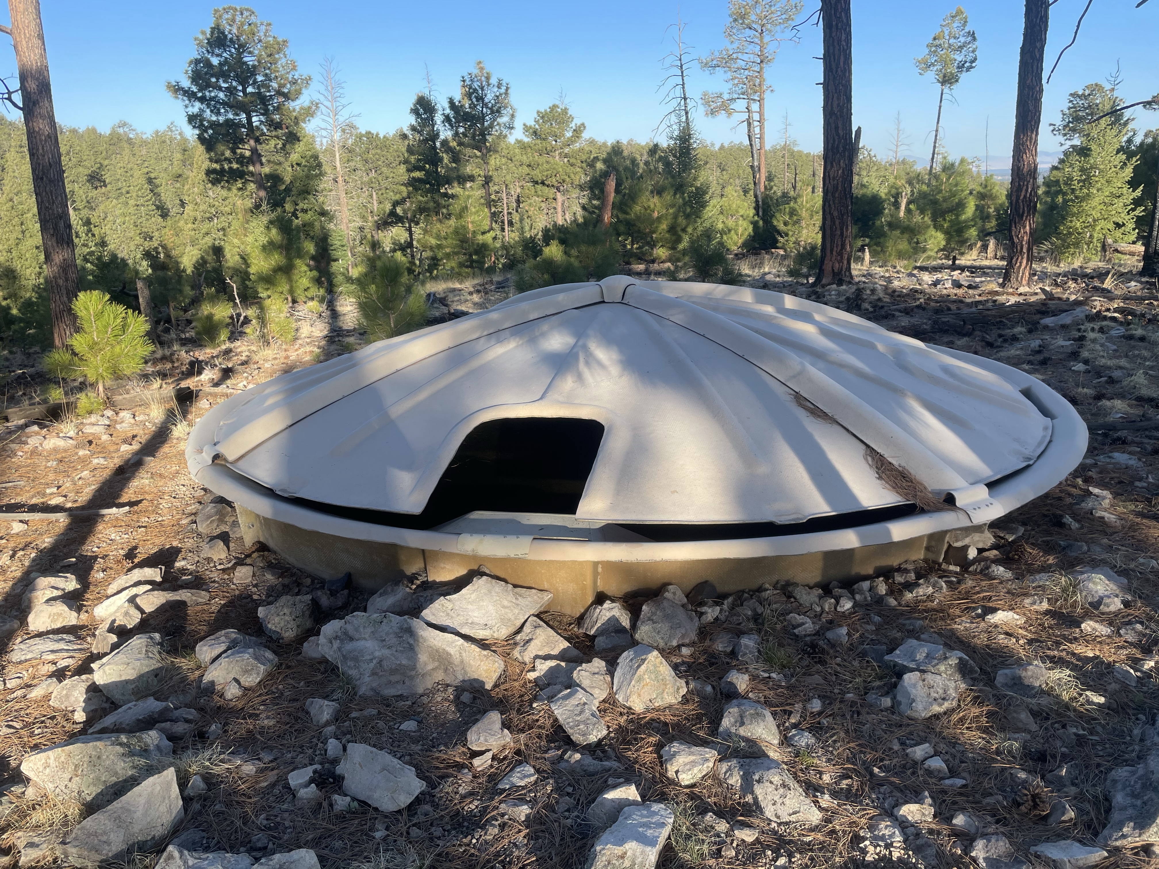 2 hours lingering at the spring, and then we tackled our last six miles. I felt so refreshed l was able to enjoy the movement again, and as we dropped down the pine covered hillside to the trailhead, nothing looked ransacked or amiss. We reached the dry ravine that was our marker, backtracked, and found the cache spot with ease. Untouched.