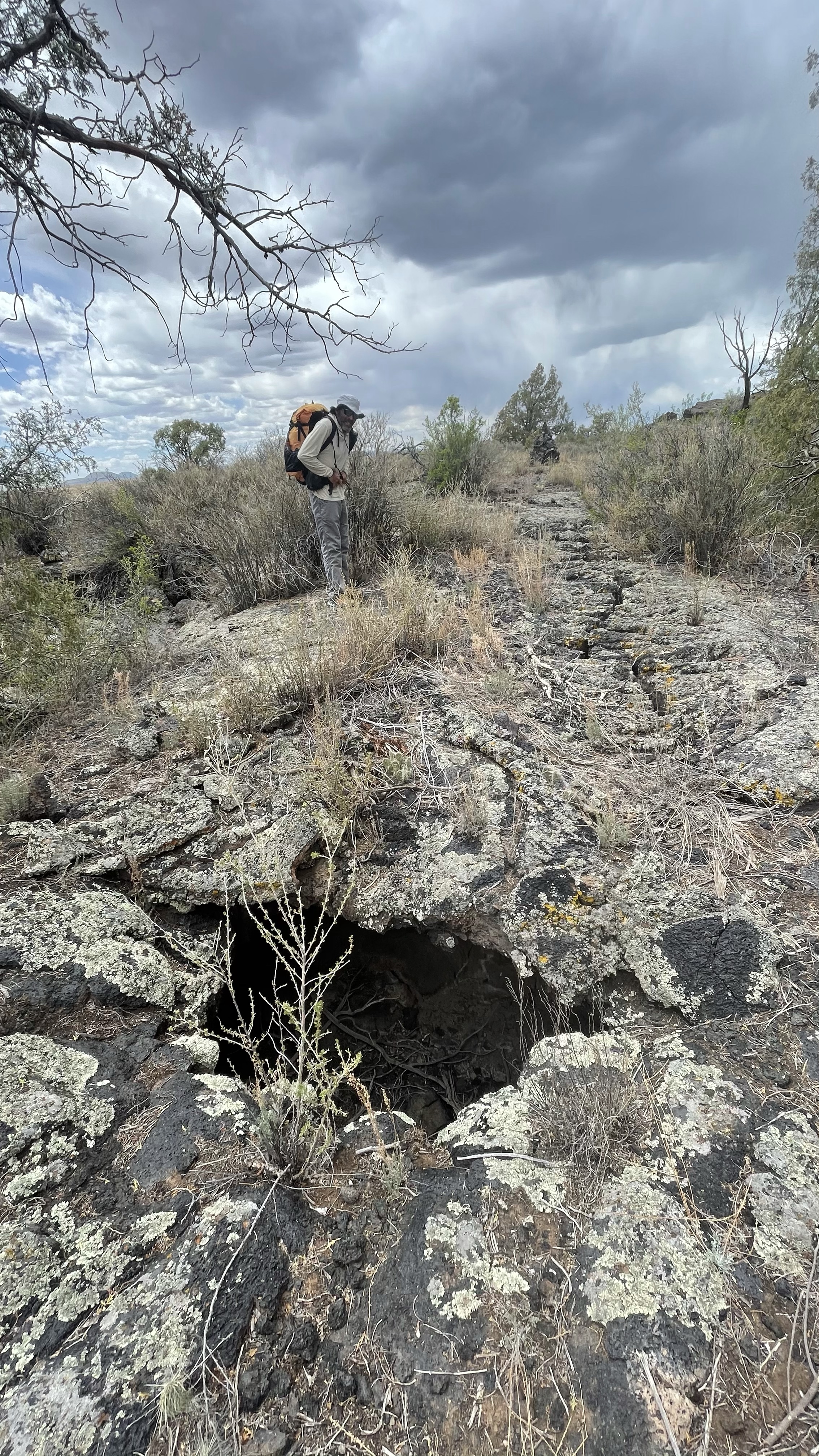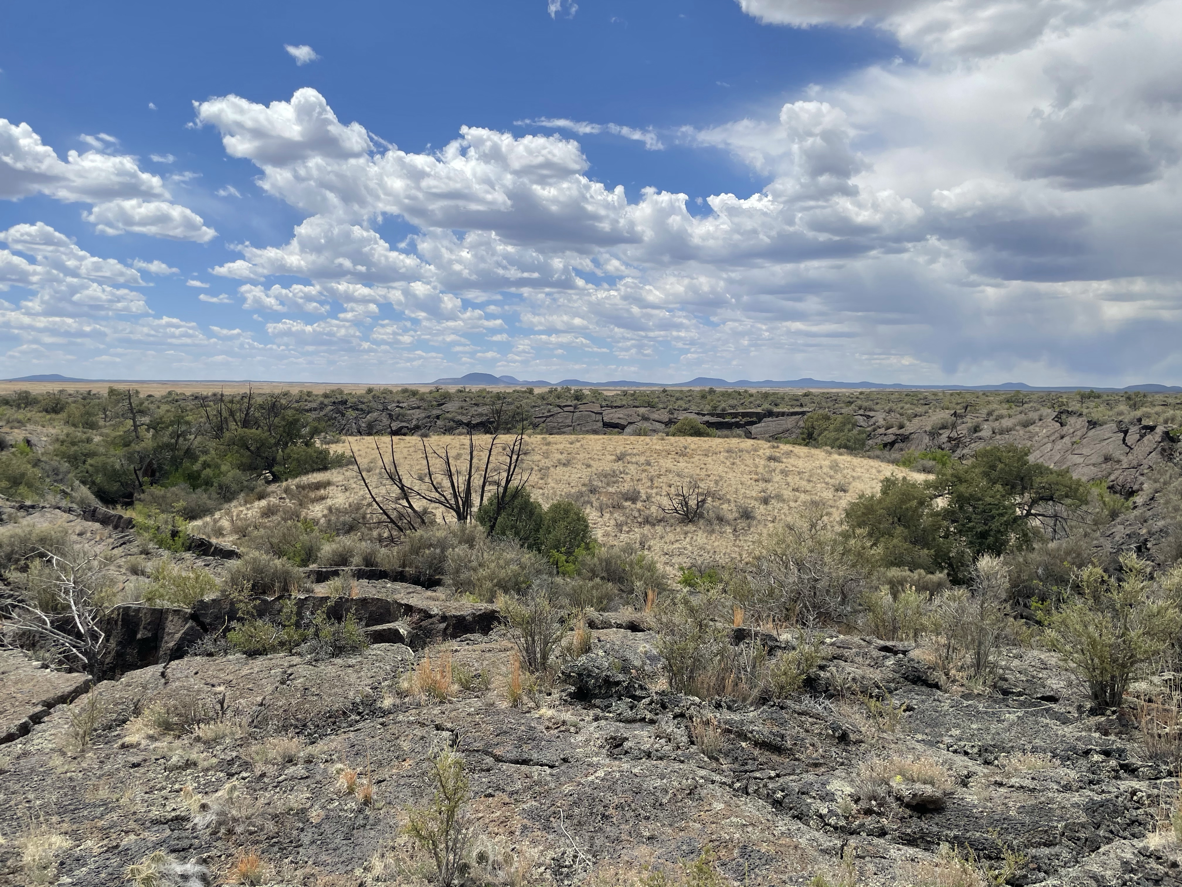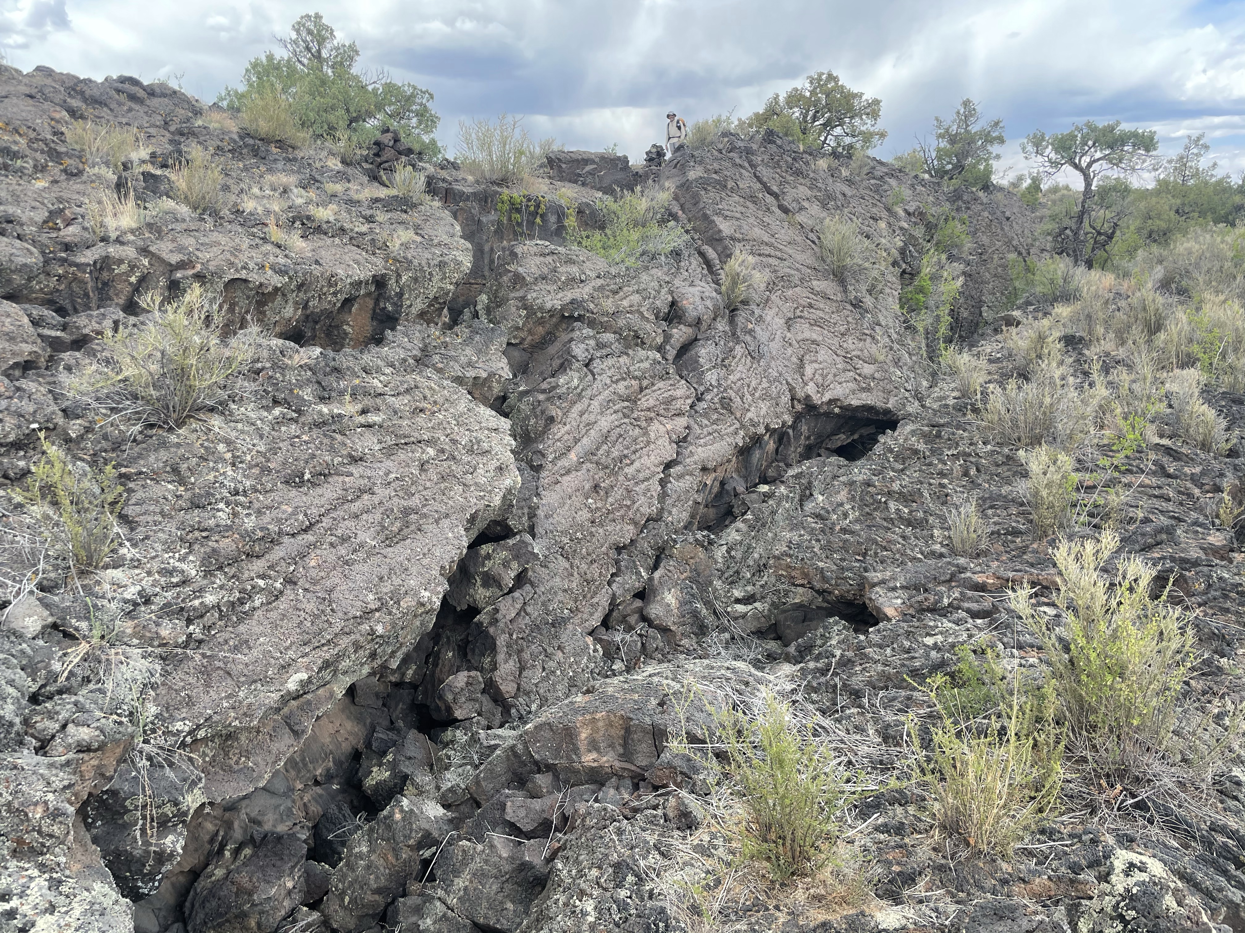 It was only one glorious mile through the edge of the lava flow, and then it was back to crossing the rubbly flats. A cow path with shoe prints suckered us off route, but we caught it quick enough and backtracked, without too much time lost.