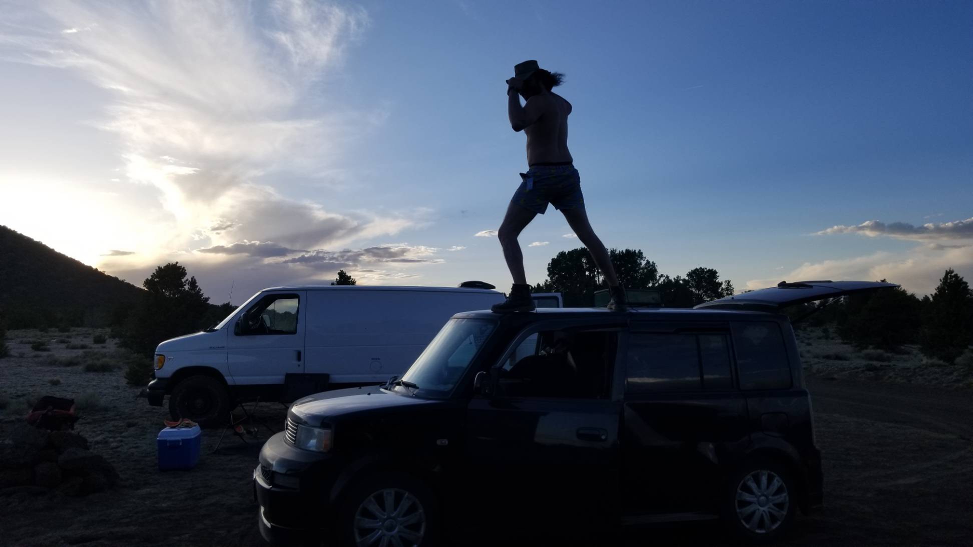Vince indeed found his way back, as Crusoe told about their adventure to explore Lava Falls, and another hiker, Jamie, who Crusoe had met at the Toaster House and passed on this road, arrived and was immediately plied with food and comforts. Crusoe started a pan of peppers, onions, and beans searing, Vince seared steaks and portobellos, and Prana and I started fully packing our packs – it would be the last night with brother and friends, and tomorrow morning we would leave, fully loaded and fully self-sufficient once again.