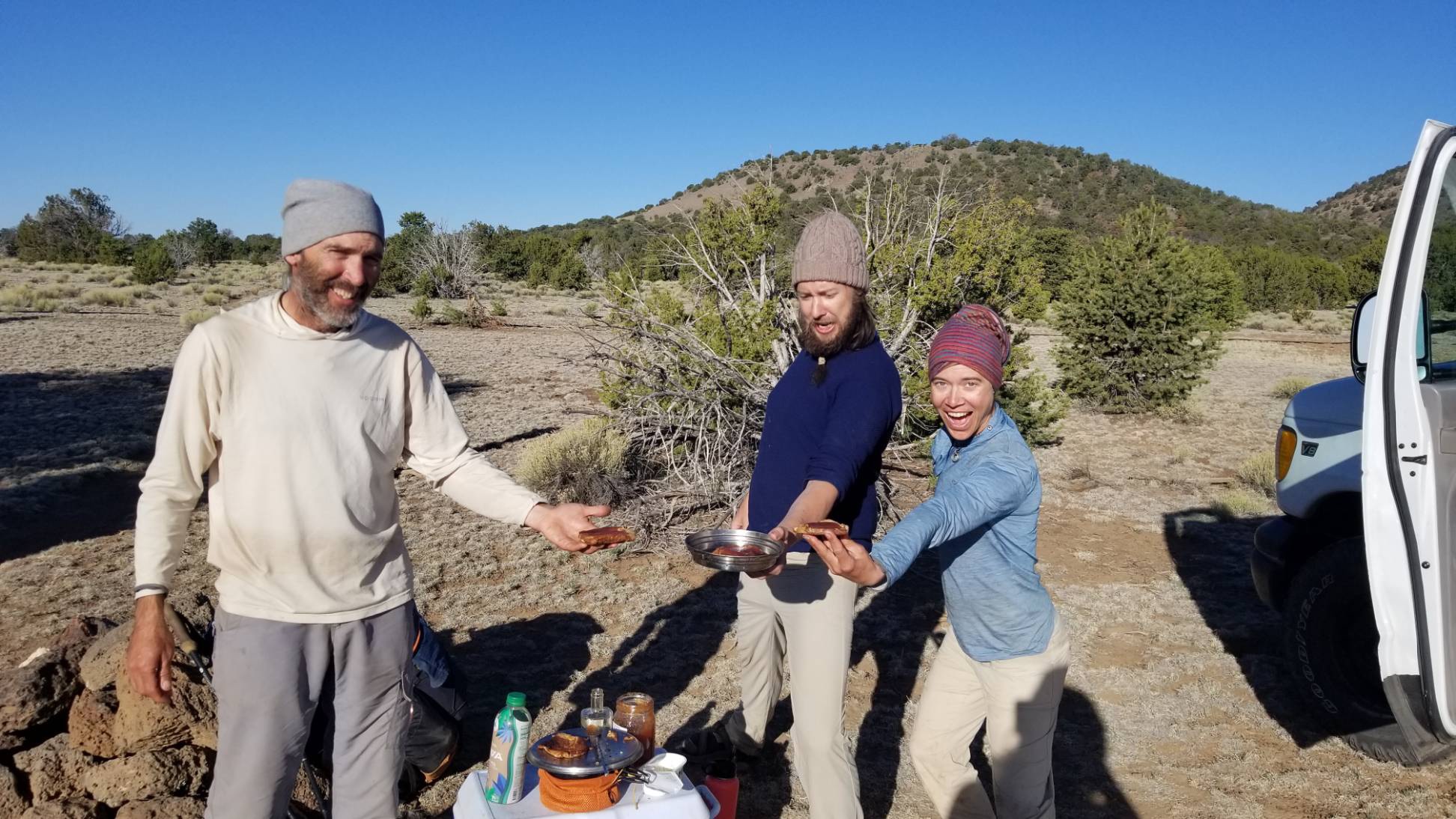 For all the motivated intentions, we didn’t actually leave until 9:00, the day already bordering on hot. After the last couple of days of carrying such little food and water, the packs felt comically heavy again. We said our final goodbyes, and hiked into the lava.