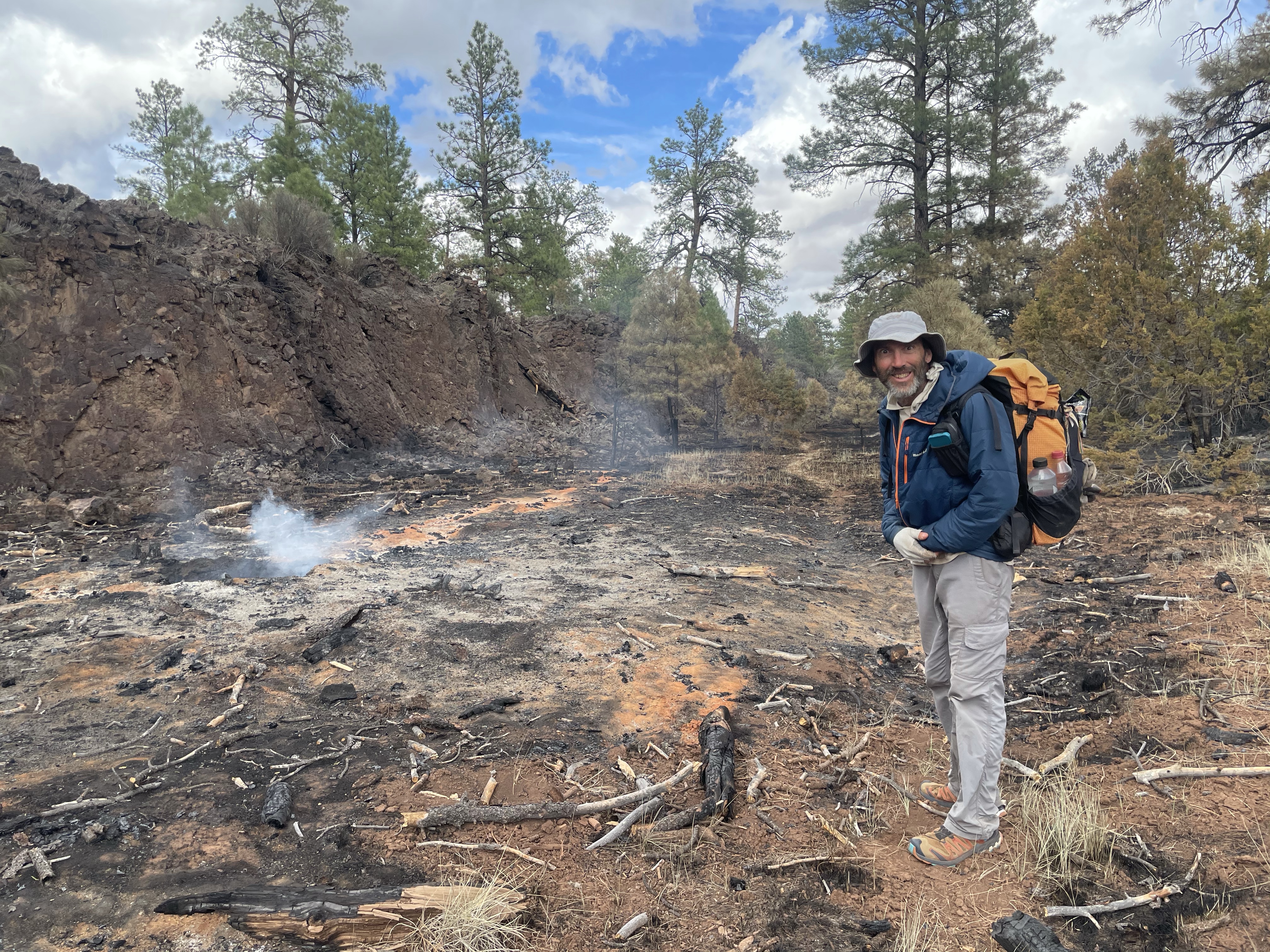 We followed 3 foot high cairns from the picnic area adjacent to the loop for 10 minutes before realizing that 1) we hadn’t seen a CDT marker and 2) this trail was a bit wide and plush for standard CDT. Also, the ground was charred. “Oh, that’s right,” said Prana, “I did read they were closing the trail and doing a prescribed burn on the 16th and the 17th.”