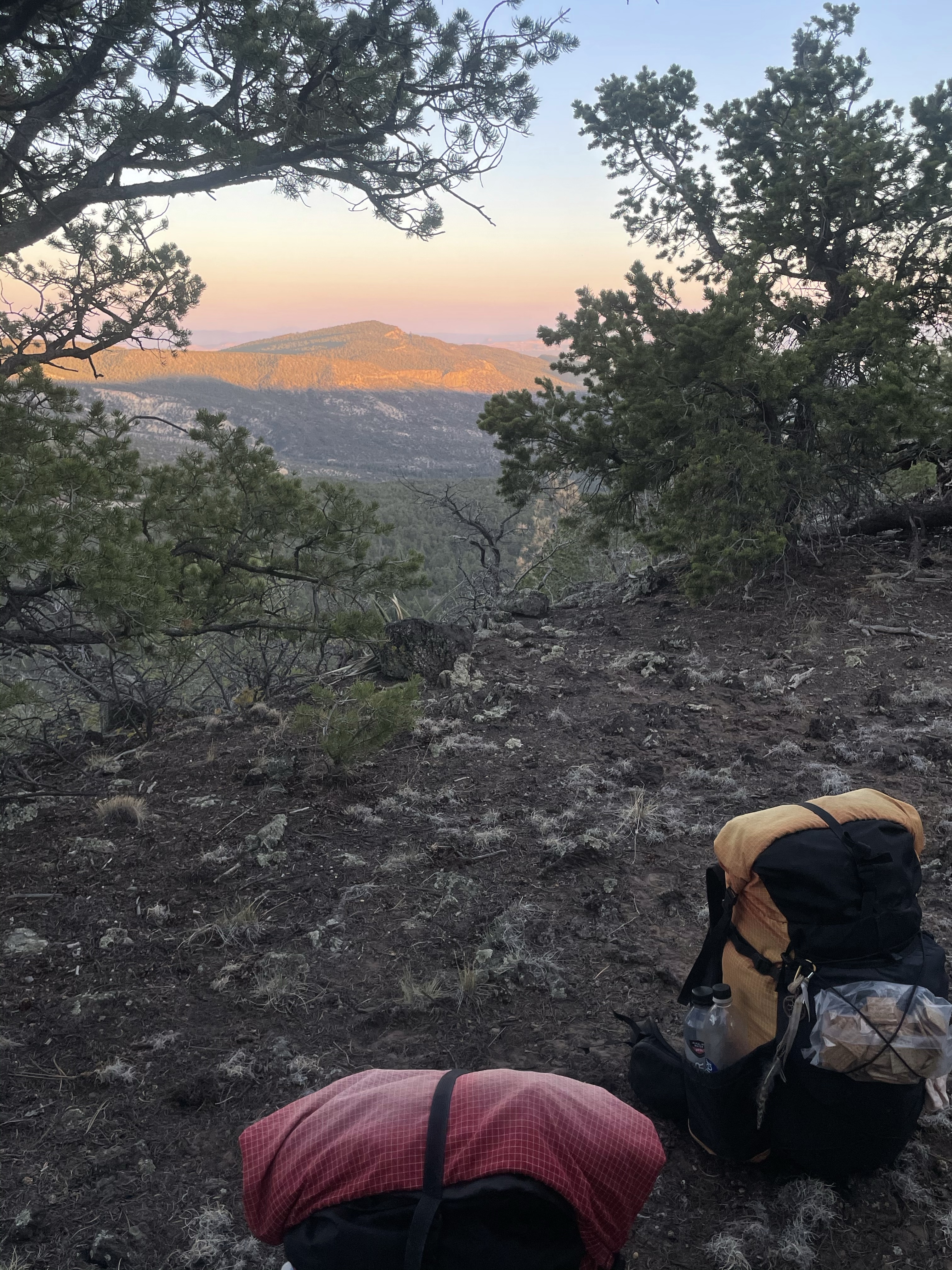 5 miles later we made the junction to the summit trail and an awesome camp in the pines in the last of the light.