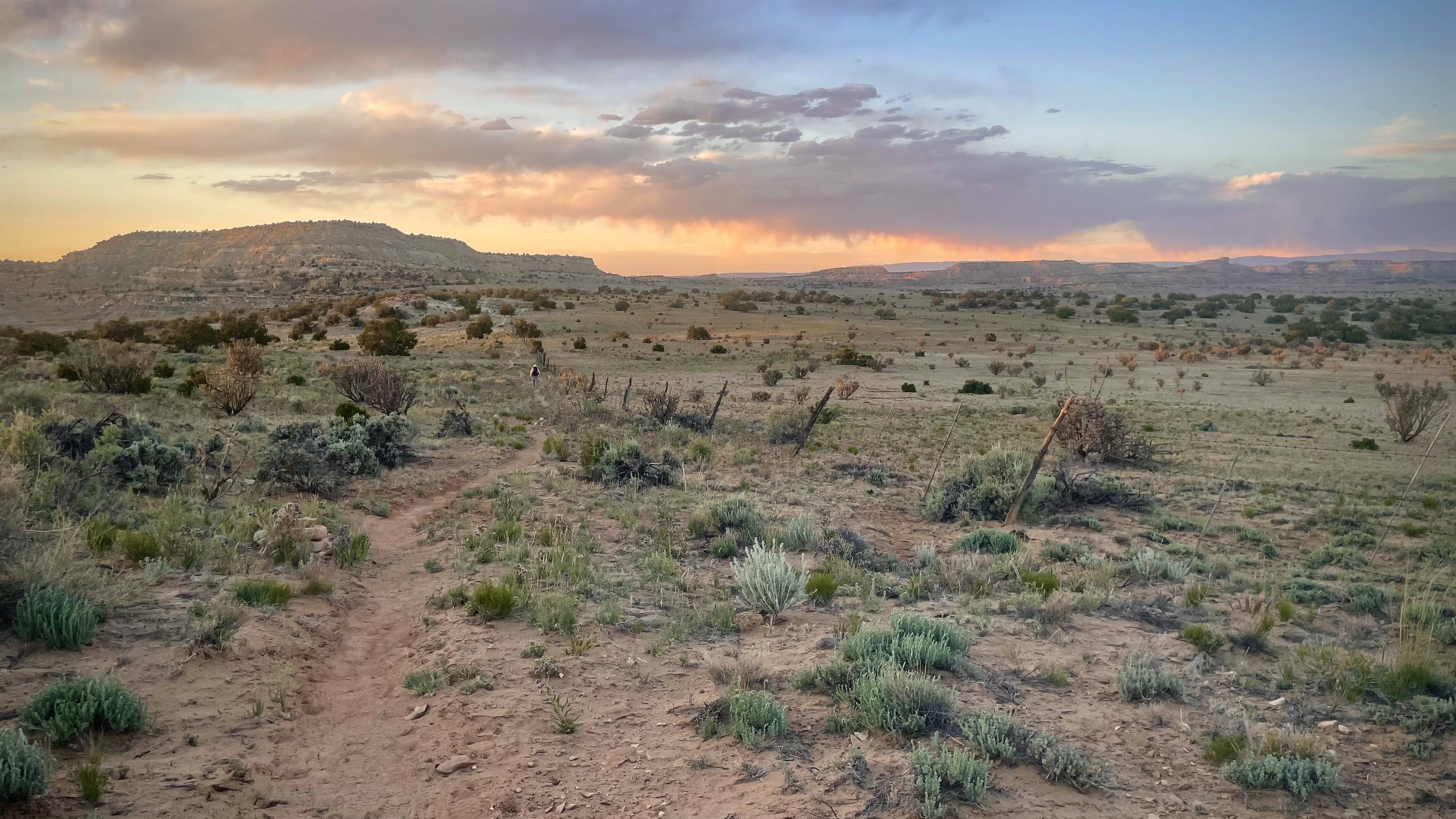 Prana arrived and we moved to distant shade, leaving the filter system to its own devices. It seemed like everyone we had talked to was taking big chunks of time off in Santa Fe, which we didn’t want to do, but what were we going to do about the snow in the San Juans? It turned out to be a terrible time to talk about it, since neither of us were in a good mood and phone screens are not ideal for paging back and forth through lots of maps. I was deeply, deeply bummed when I went to retrieve our water, only to find the hose had popped off the filter and all the hard-won drinkable had run out all over the ground.