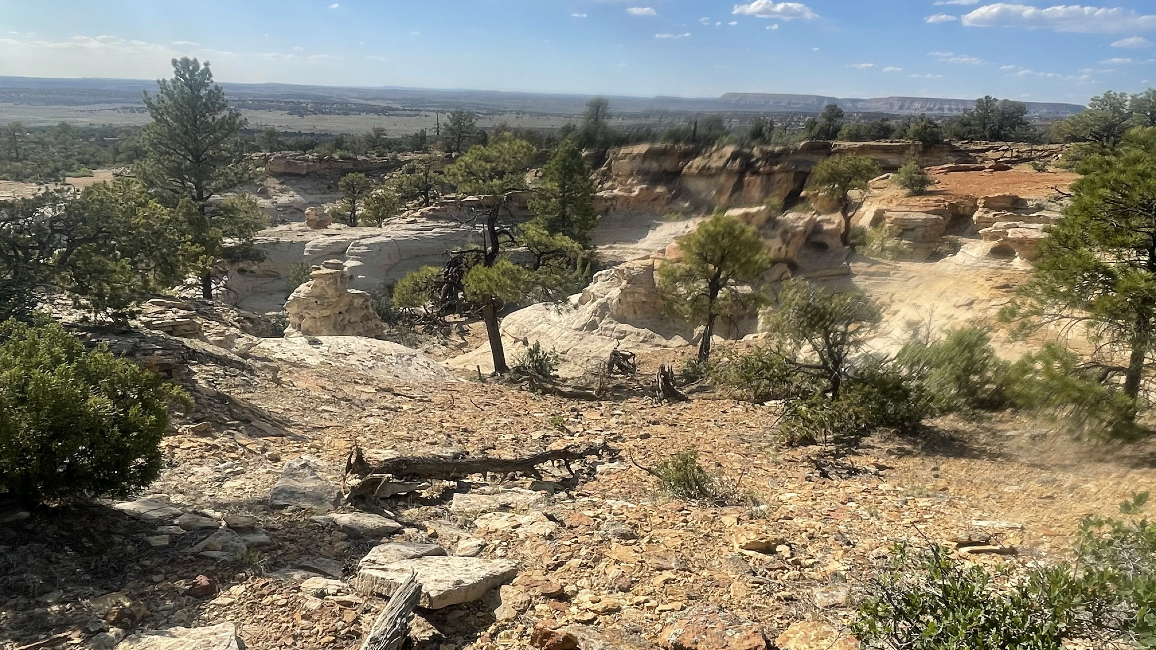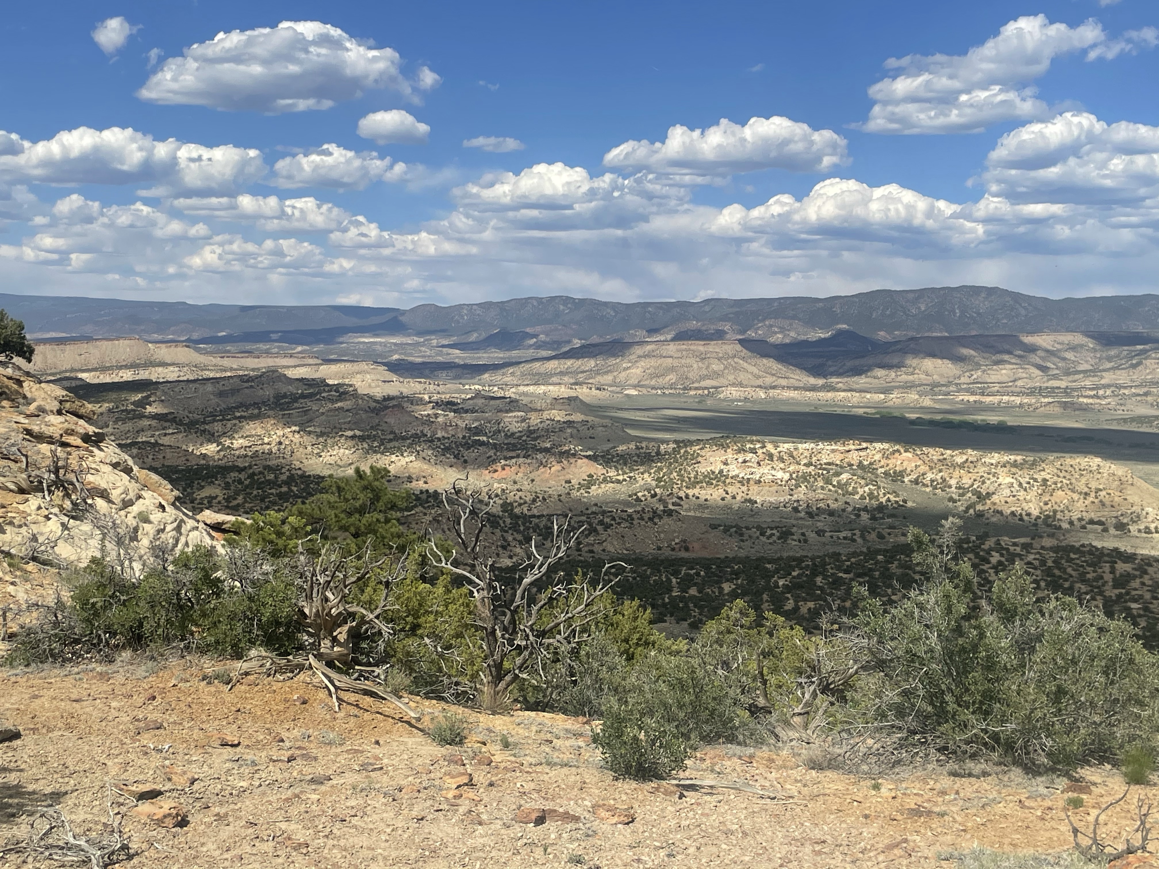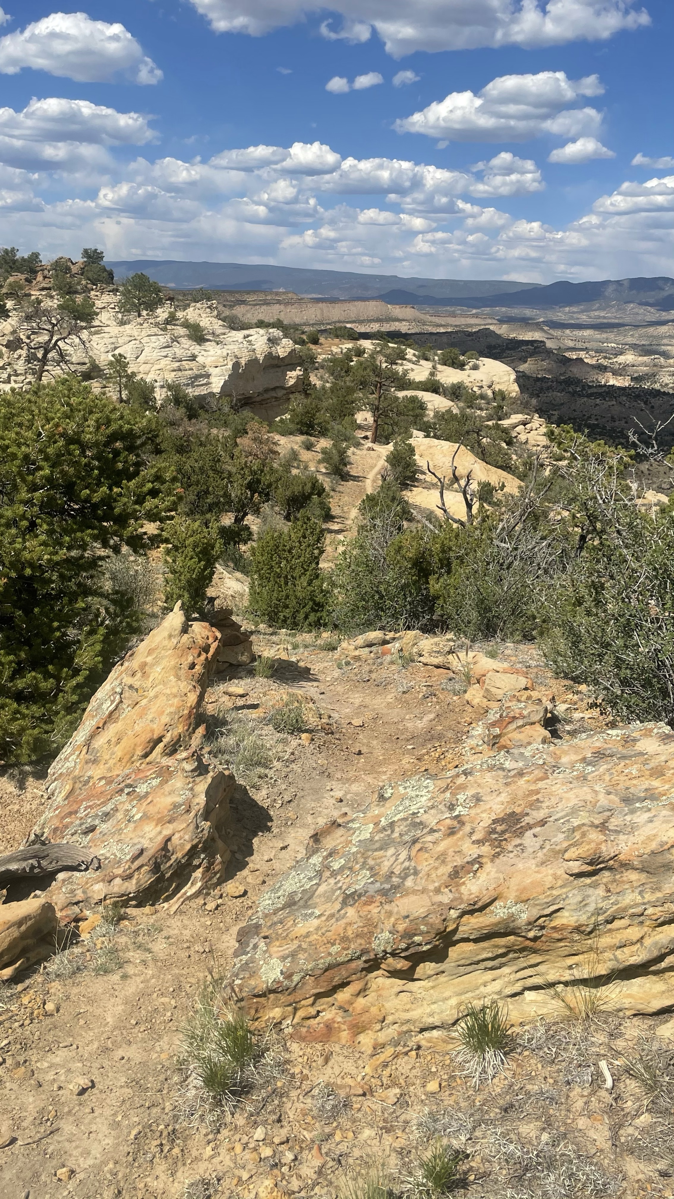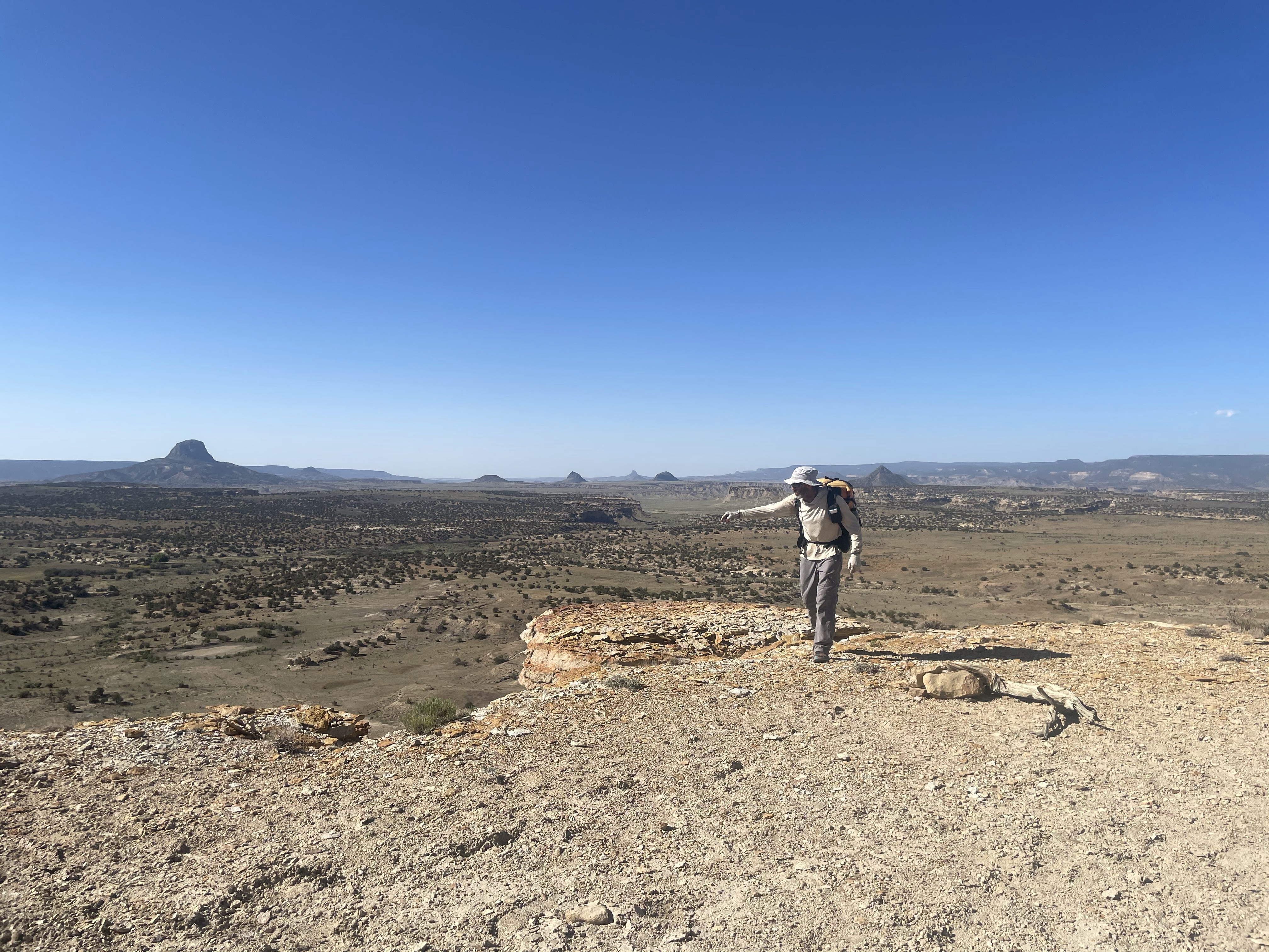 On the mesa top the sun beat down, and I finally had to squeeze into some juniper shade for a break before my brains boiled- Miles or shade, miles or shade, the desires tic-tocked in my head. I hated feeling like I had to catch up to Prana, but I hated even more the feeling that I couldn’t keep up, so only 12 minutes, and then I was back at it, pressing forward through the shimmer and hum of the heat.