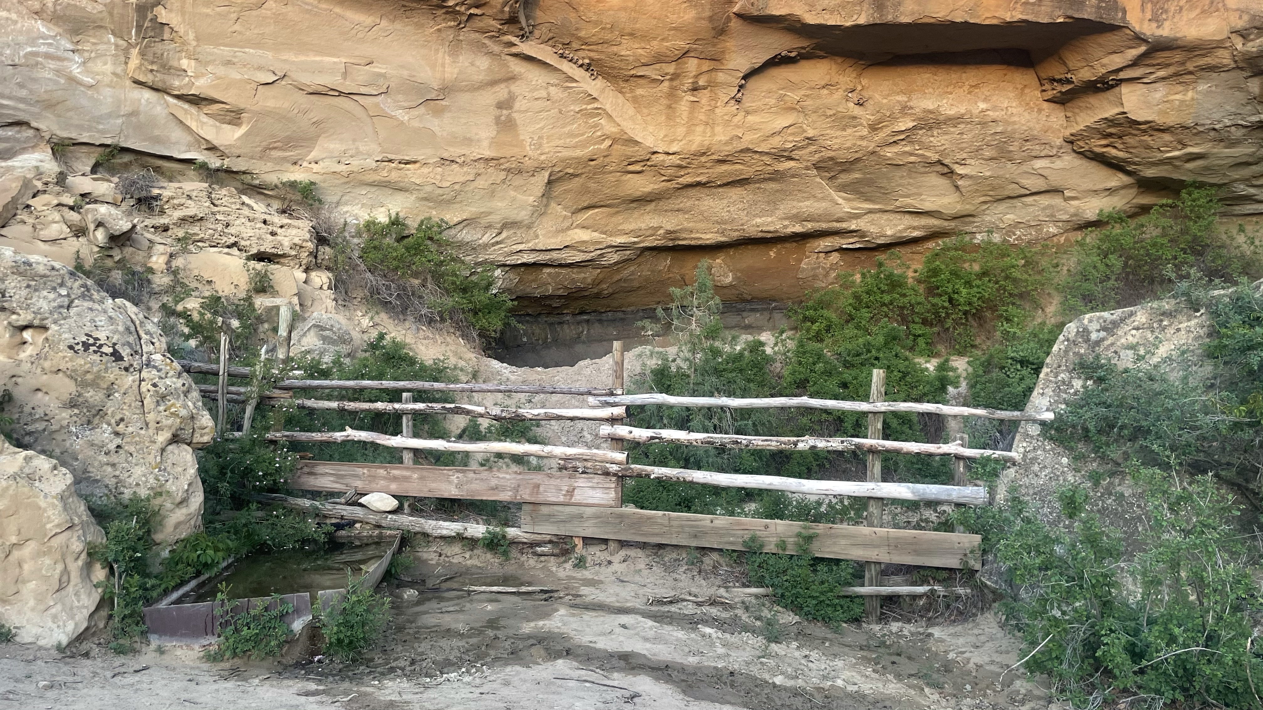 We laid there for at least an hour, and then gathered the gumption to go on, the air a little cooler, the light a little goldener. It was only a few more miles to the water- oh water which dictates everything out here- and we traveled across a gently rolling sea of pine-studded sandstone slickrock until we dropped down to Jones Canyon Spring. It was what you would picture an oasis to be: live oaks shading the spur trail, wild roses and ferns tangled and framing the alcove, spring filling and overflowing a large basin, subtle breeze cold and wet and air-conditioned. Swoon.