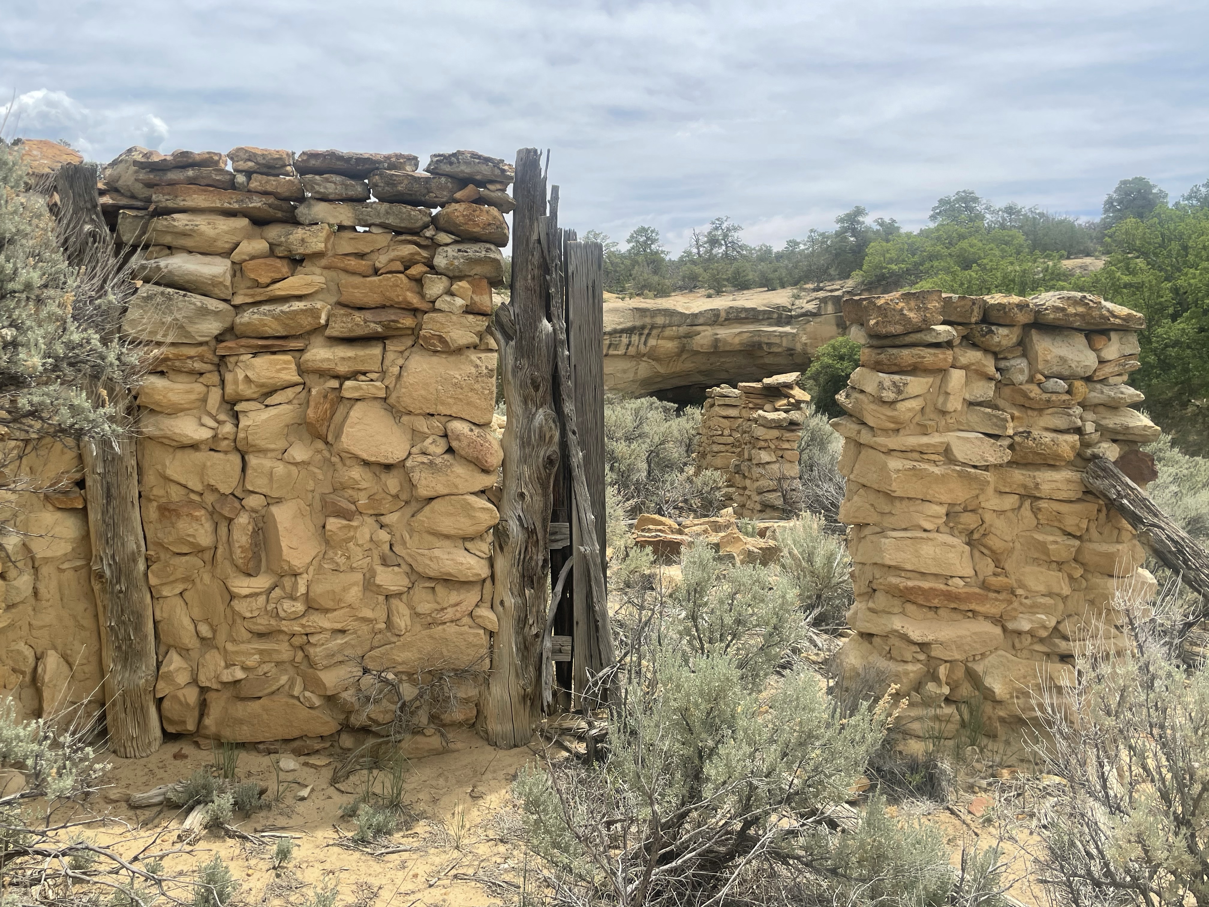By noon we’d drunk all of our water, and it was time to start moving anyway. We refilled at the beautiful Jones Spring, and I climbed up to look at the little set of masonry ruins. An old homestead of some kind, the wooden slats of a door hung still preserved in the dry desert air. Easy to see why whoever it was chose this spot to live.