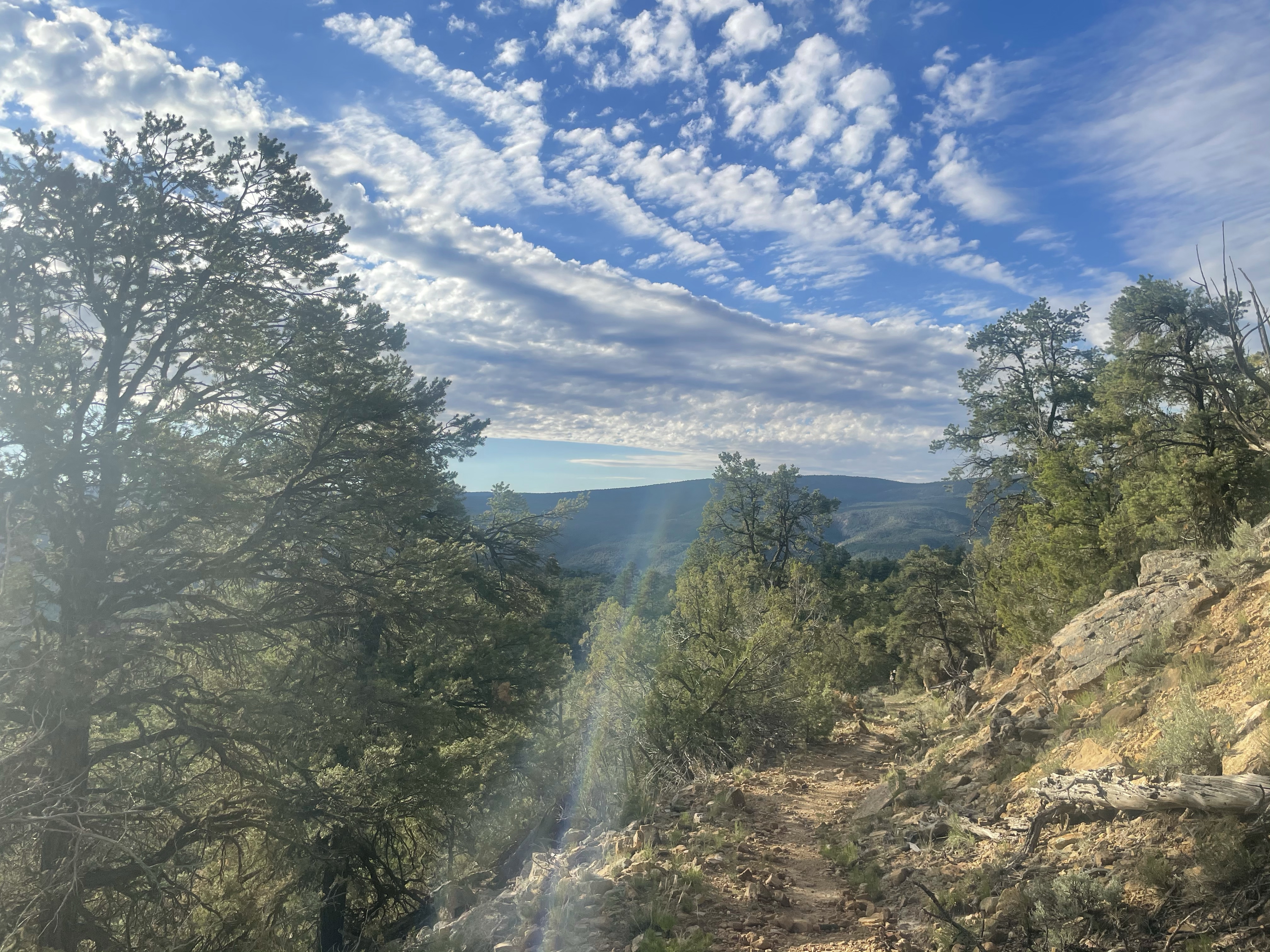 The south facing bench we traversed grew hot early, and we were passed by another couple, Smoosh and Wisecrack, who had started from the highway after returning from Santa Fe, and who appeared fresh, well-caffeinated, well-rested, well-hydrated, and town-fed. I was a touch envious.