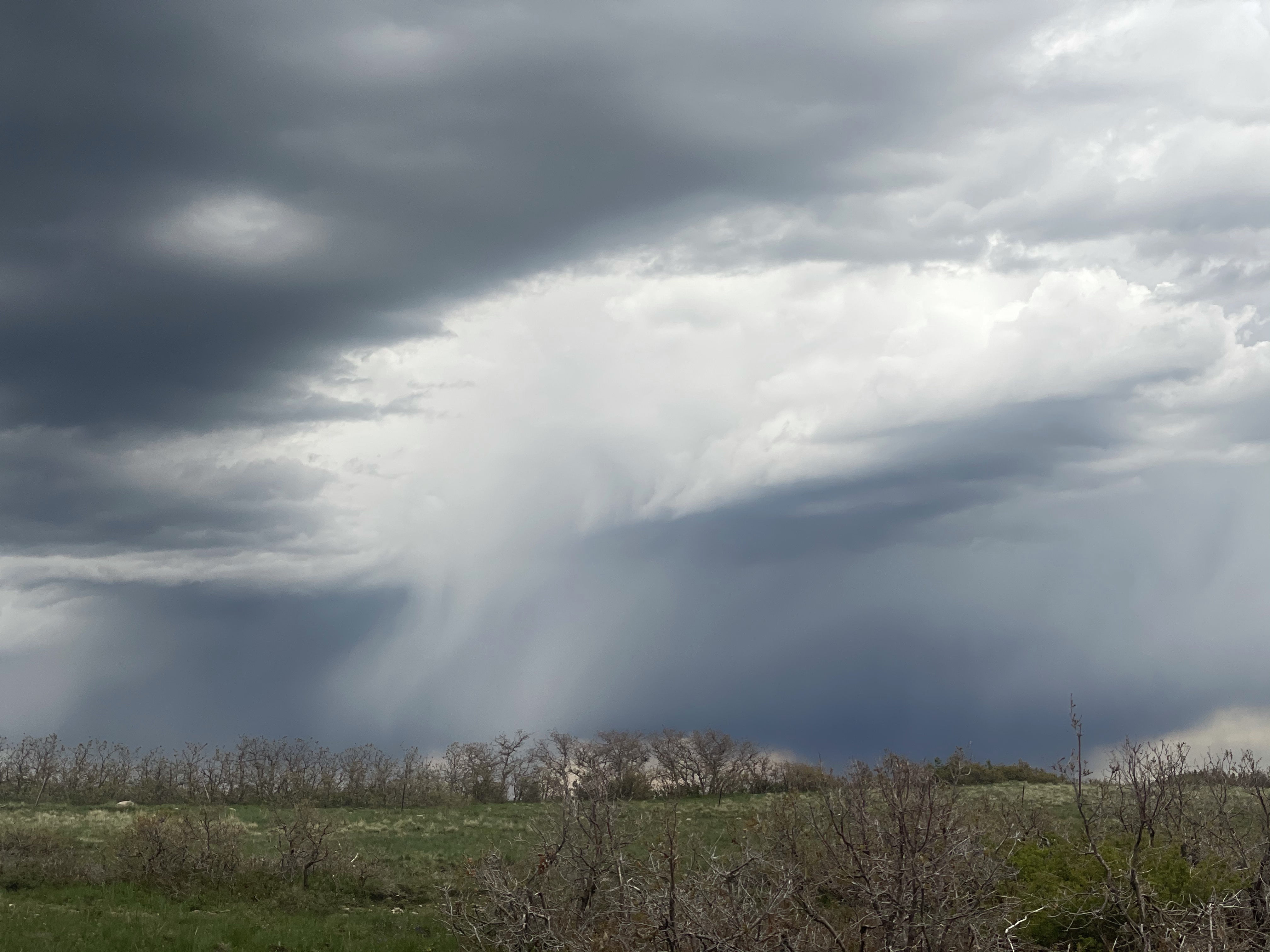 But no- a few raindrops, then a steady patter, then hail pelleted down, stinging like birdshot. I speed-shuffled for an anemic stand of gambel oak, where I wrestled into my rain gear with half-functional hands. The hail softened to rain, and I slowly warmed as I hiked, especially once the bare ground of the trail tread soaked enough to morph into the grasping, weighted clay.