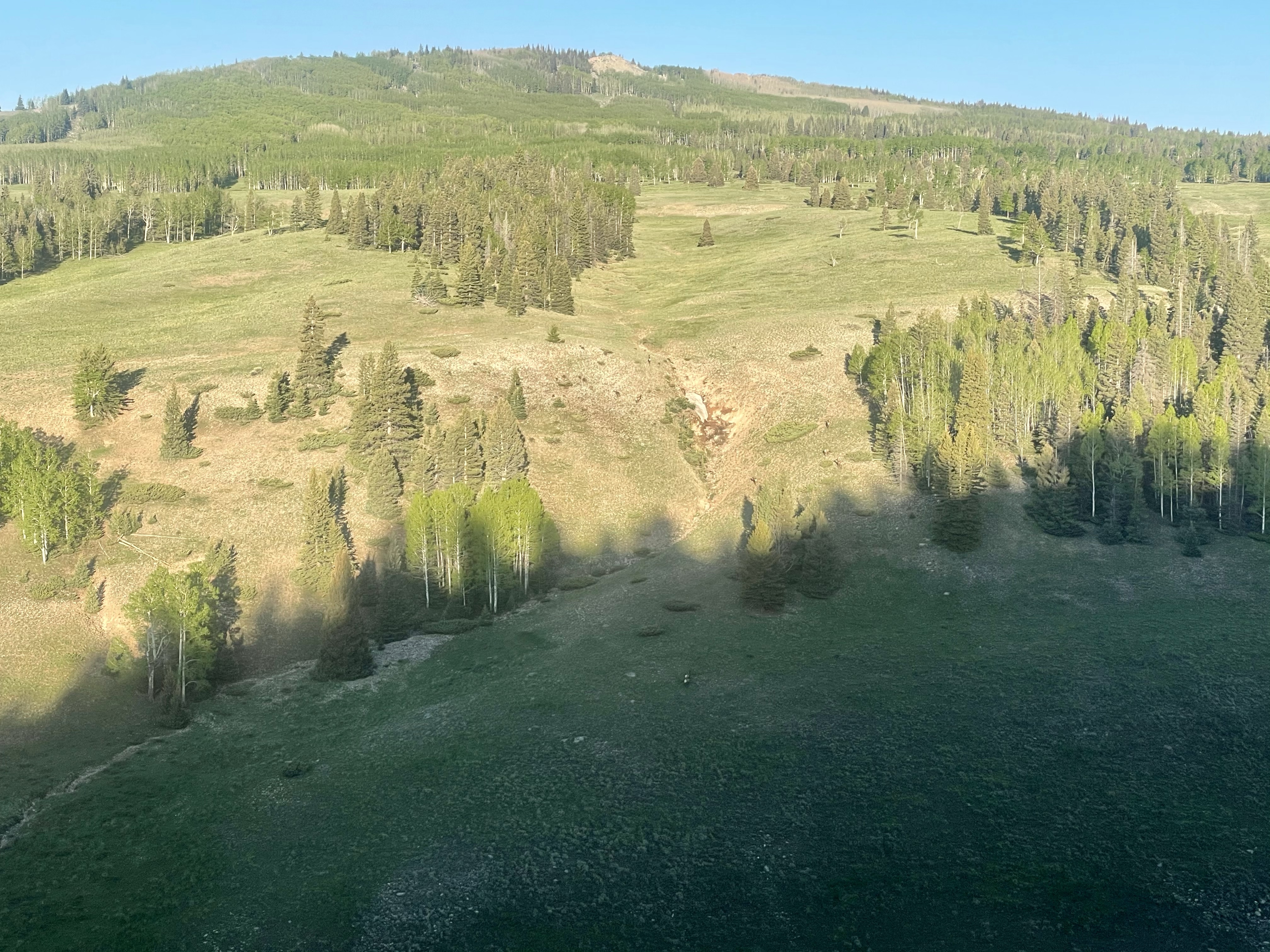 We traced the edges of big, broad valleys through sparser and sparser trees, and climbed to a high point the opened the Las Cruces Basin Wilderness below to our right, and offered our first clear glimpses of a high ridgline of snow, close enough to very likely be our route 30 miles north. Snow capped mountains! The San Juans!
