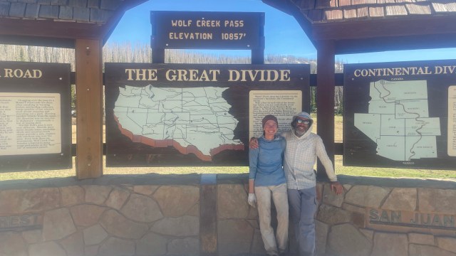 We had a bit of time to kill until my brother would arrive, and as often was the case were pulled into conversation by another hiker, who arrived from up the highway, as though he were southbound. He was Chip, from Israel, and effusive about the wonders of the Israel National Trail- “far superior to the Jordan Trail,” he assured us. He recounted his full-on 3-day journey from Chama (which had taken us 5 days, mind you) and his wild self-arrests with his trekking pole (now bent) as he had no ice axe. “I decided to take the Creede cut-off,” he lamented. “30 minutes ago I started walking and my heart was breaking. I felt like I was giving up on a dream to go that way. So I turned around to think about it.” Follow your dream! we encouraged him. We chatted over the logistics options we knew by heart from studying for exit strategies, and he’d been unaware of a much closer resupply option. “I can only carry about 4 days of food, but I can do 80 miles easily,” he said excitedly. “But I still don’t have an ice axe. And I can’t rely on my trekking poles again; that was too risky.” There was no rule that said he couldn’t hitch back down to Pagosa Springs, we assured him, even if he had just hitched up only 40 minutes ago. “I am going then! One of the gear stores will have an ice axe!” He clapped his hands together, positively beaming. “If you ever come to Israel to hike you must let me know.” And with that he was into an SUV and whisking back down the pass.