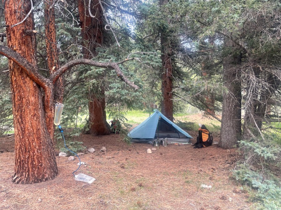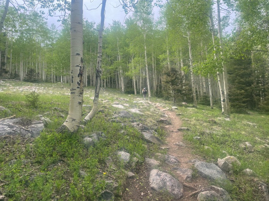 6/6 We bid goodbye to the beautiful tree cathedral, and crossed Rio Vallecito on a downed log. The day was uneventful, though far from unenjoyable. We hiked through aspen and fir and spruce and pine, emerald green grass and rainbows of wildflowers blooming everywhere. We stepped out of the way for about a dozen bicycles, …